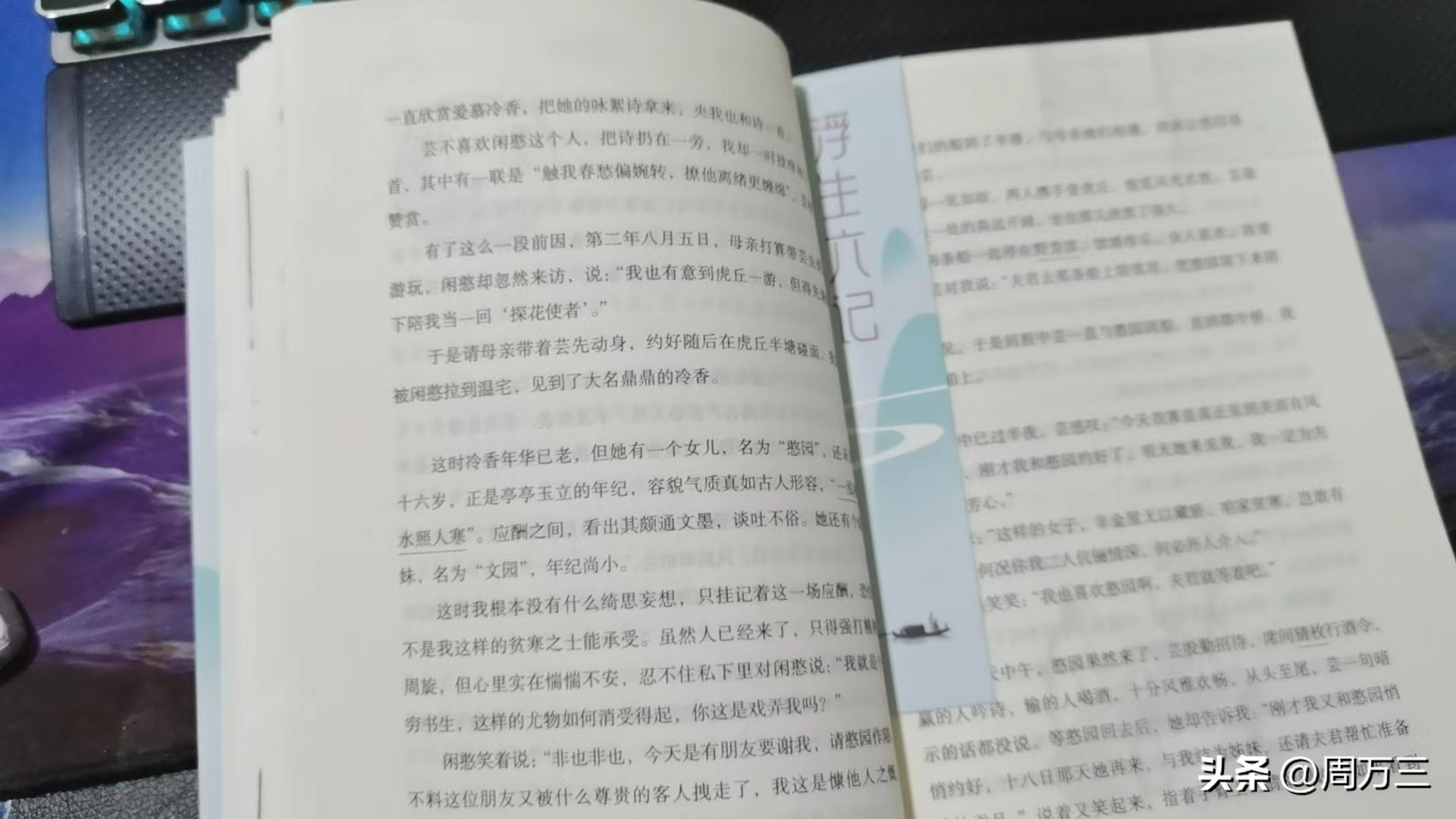 特别是当我读了许多关于王阳明的书籍之后,心中那些让我感觉重愈千斤折磨的让人喘不过气的念头,皆一朝放下。然而今天不说王阳明,先说说《浮生六记》这本书,一直听人说这是一本值得一看的好书,但直到我花了五块钱将其买回来翻阅之后,才感觉如获至宝,时常翻看,发现那些看似平常寡淡的生活,也能被过得充满诗情画意。